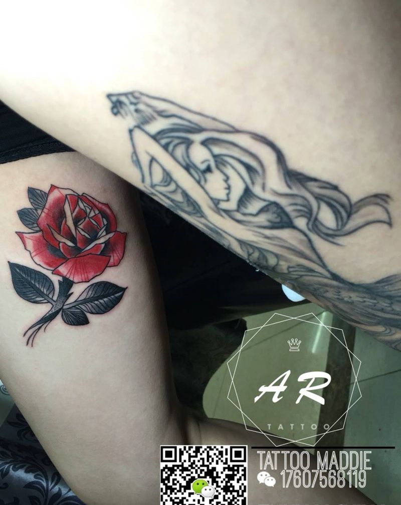 当前位置: 首页 >广东省珠海市纹身店-烬刺青纹身图案>大腿玫瑰纹身图片_成品腿部欧美植物纹身图案