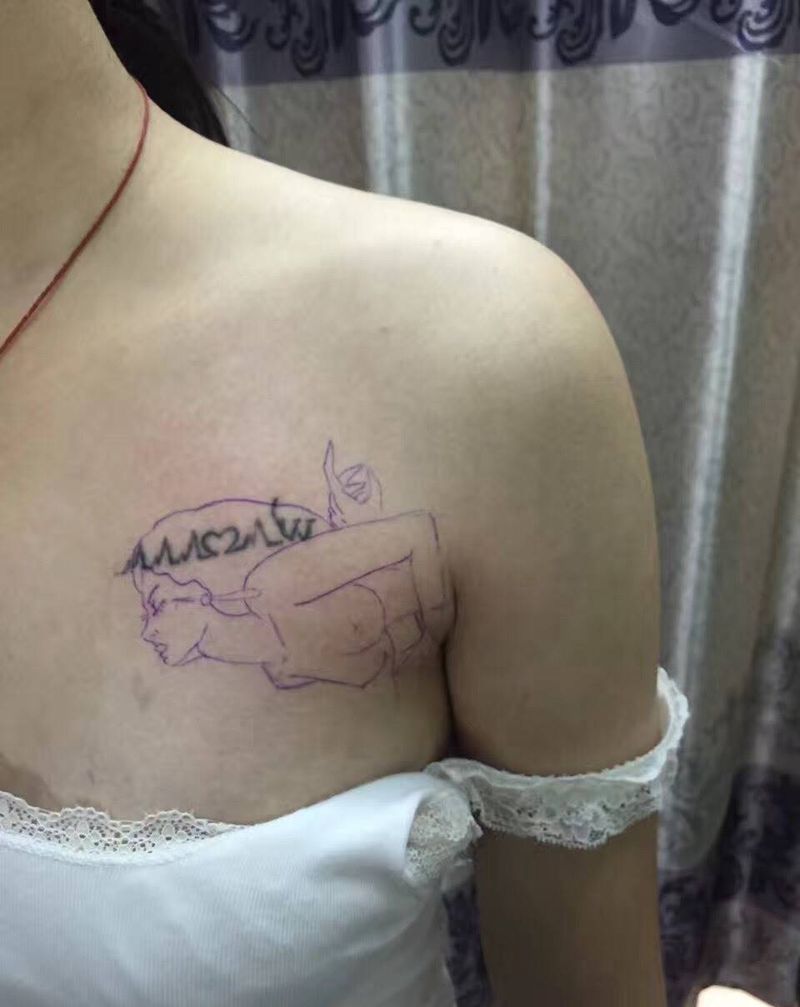 当前位置: 首页 >广东省珠海市纹身店-烬刺青纹身图案>胸上遮盖字母,小清新纹身图片