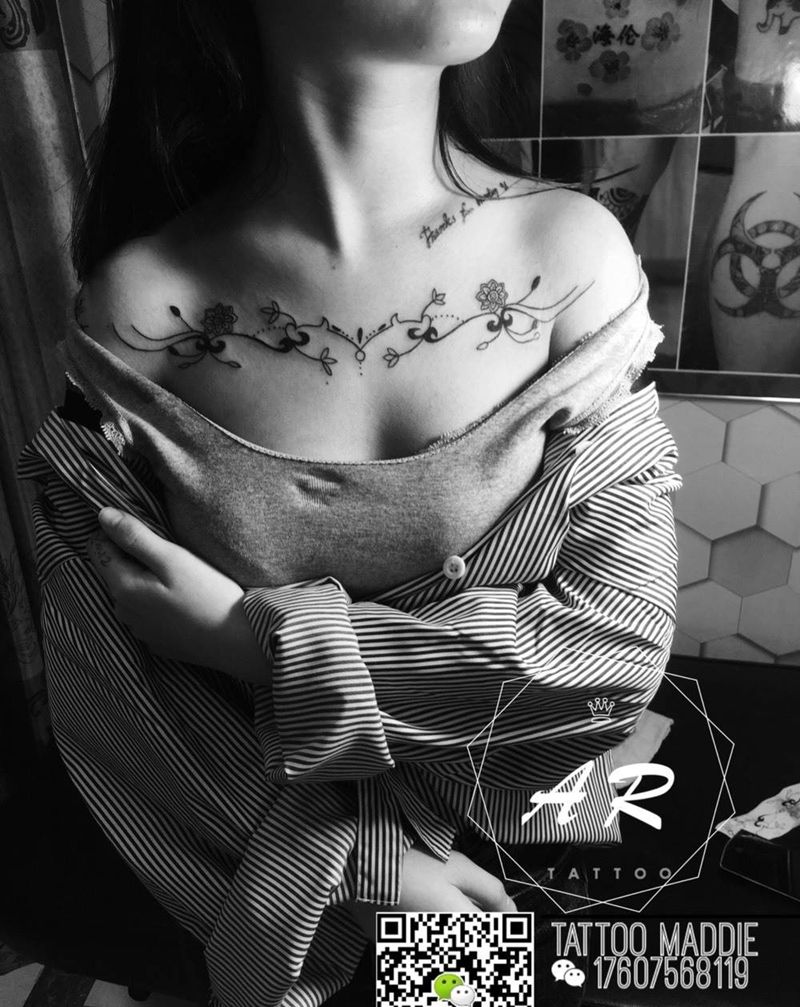 • 女性大花胸纹身_43张霸气漂亮的女性大花胸纹身图案作品