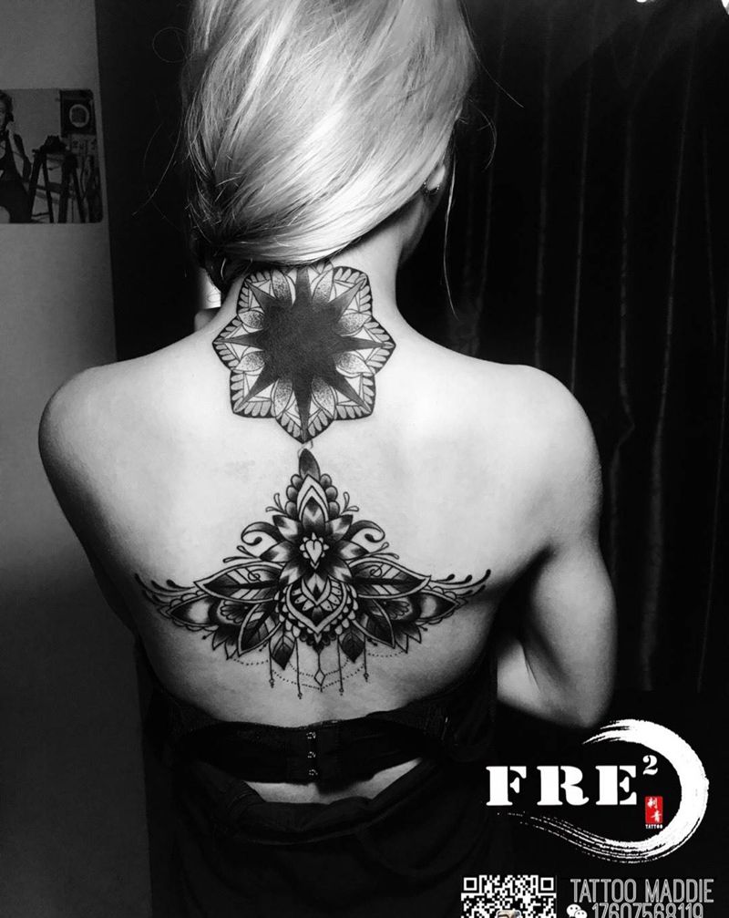 • 黑灰满背纹身图案