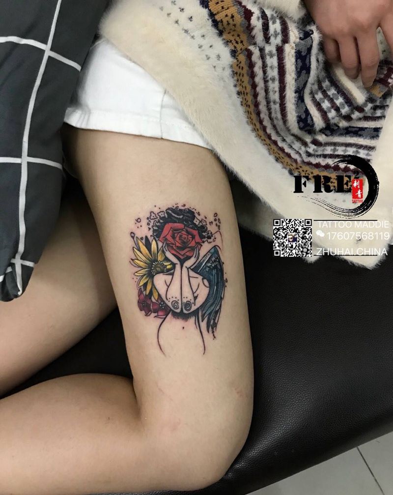 • 女性大花胸纹身_43张霸气漂亮的女性大花胸纹身图案作品