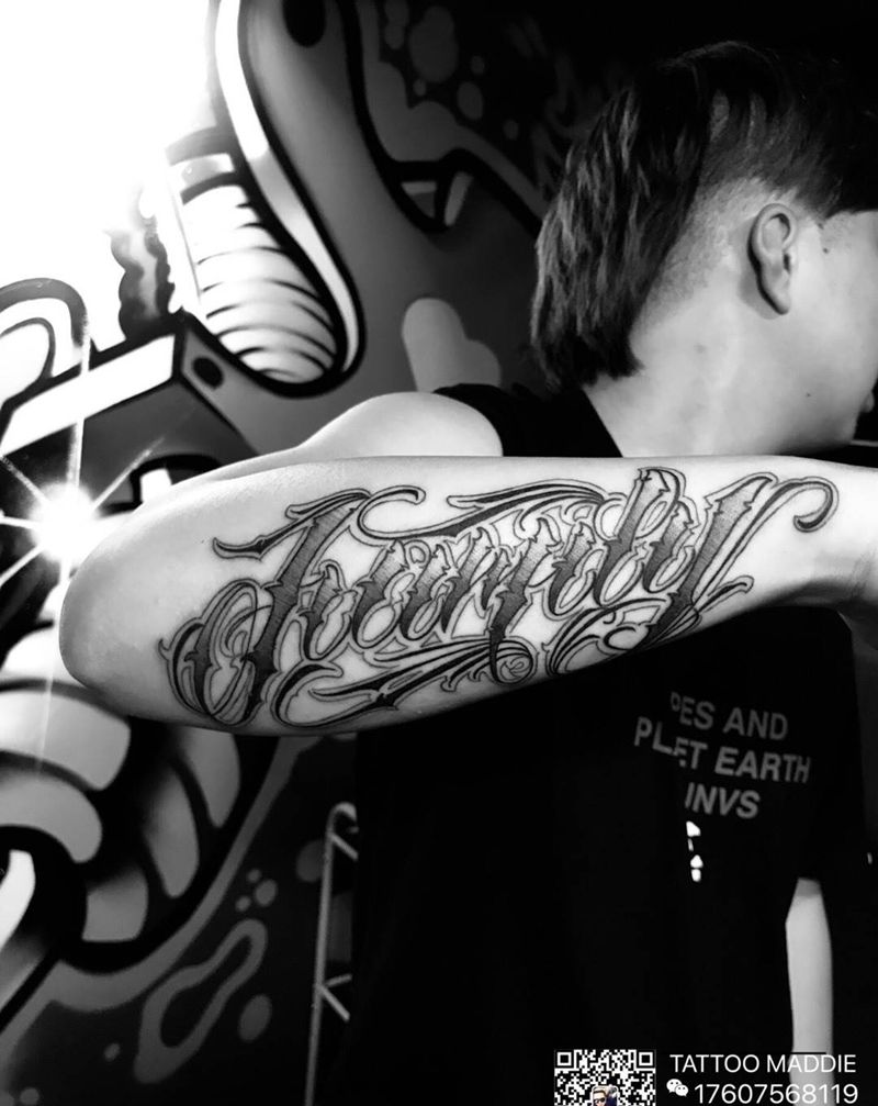 • T家庭图,一家四口生日纪念!纹身图片_手臂纹身图案
