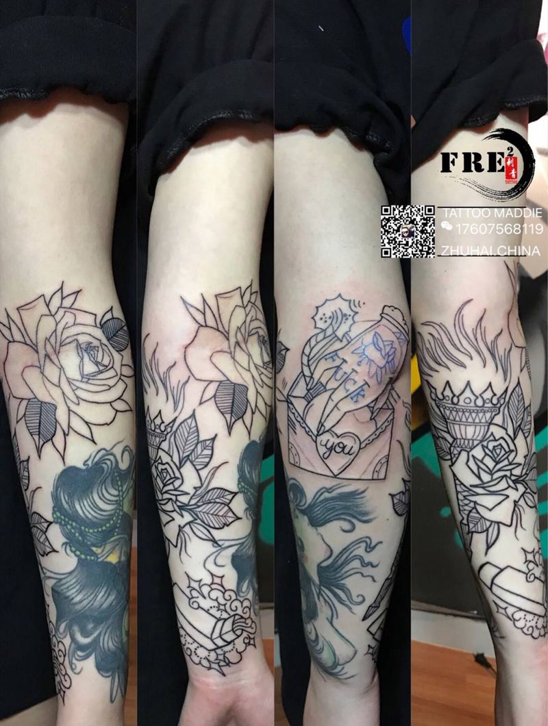 当前位置: 首页 >广东省珠海市纹身店-烬刺青纹身图案>New school 半臂未完成纹身图片