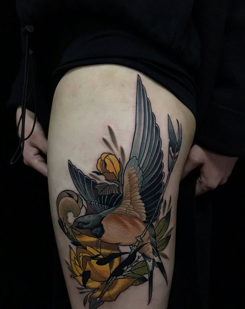 • T网红王老大花腿龙纹身图片_腿部新传统纹身图案