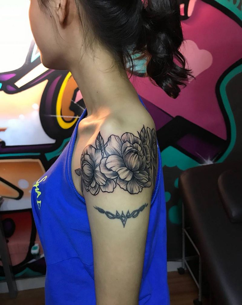 • 女性大花胸纹身_43张霸气漂亮的女性大花胸纹身图案作品