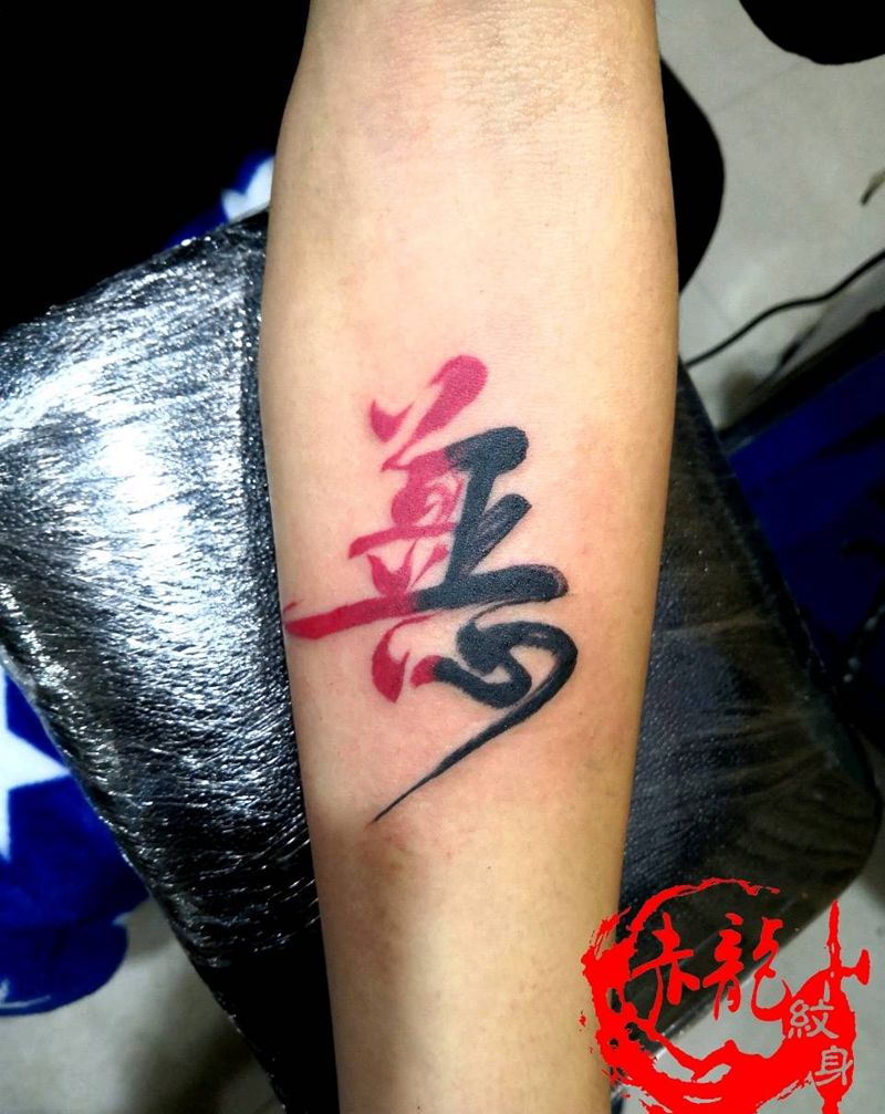当前位置: 首页 >广东省汕头市纹身店-赤龙纹身工作室纹身图案>善恶纹身图片_手臂水墨纹身图案