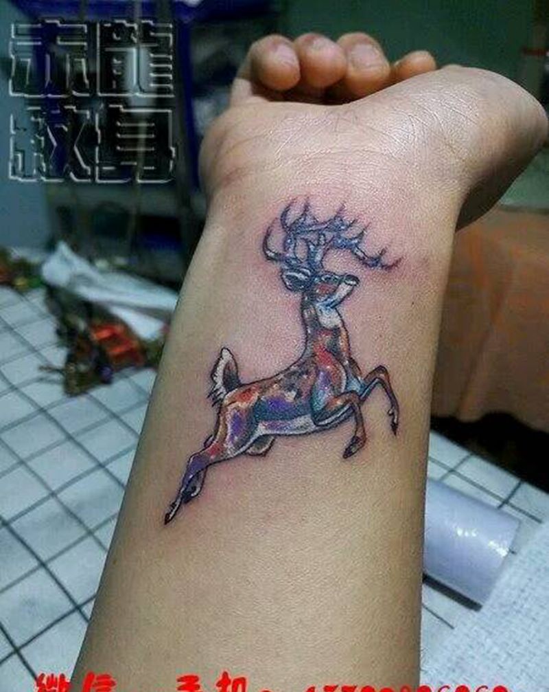 当前位置: 首页 >广东省汕头市纹身店-赤龙纹身工作室纹身图案>星空小鹿纹身图片_手部纹身图案