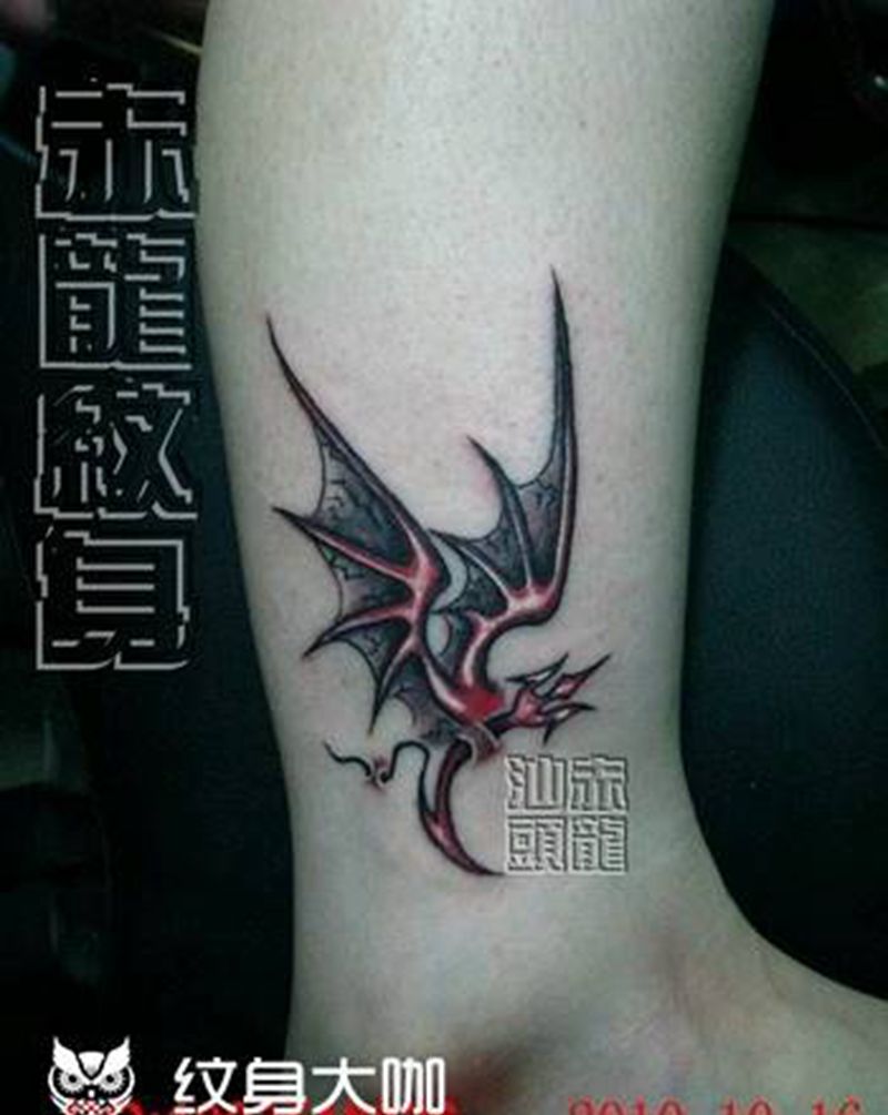 • T网红王老大花腿龙纹身图片_腿部新传统纹身图案