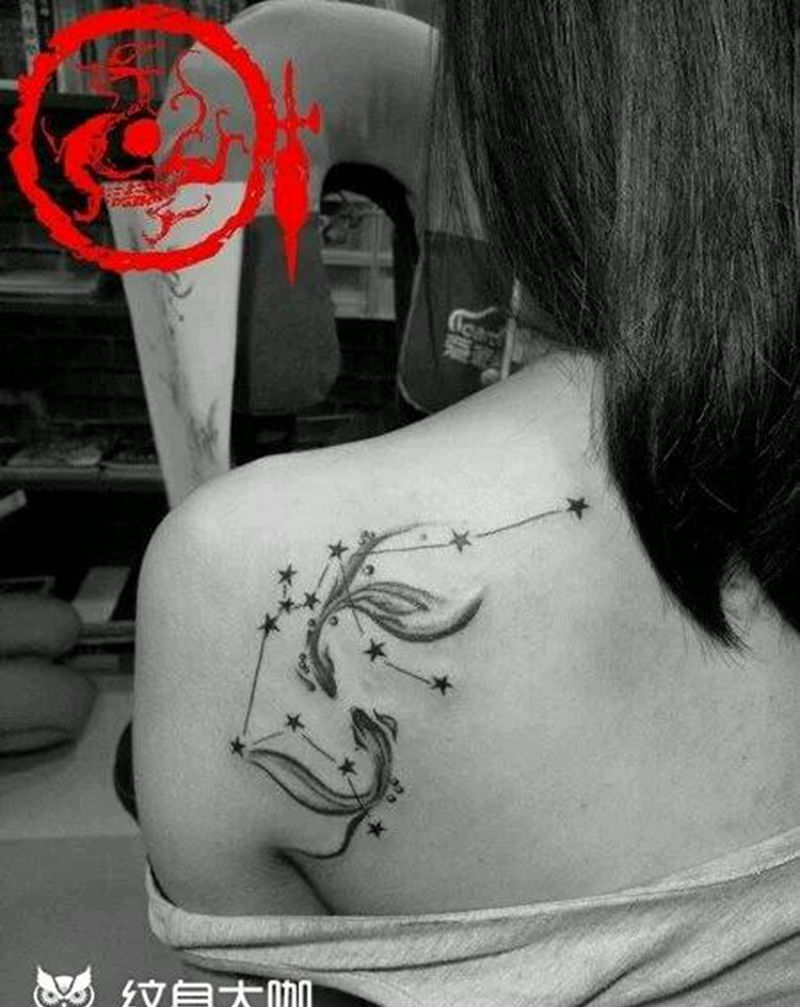 双鱼座纹身图片_背部欧美字符成品纹身图案
