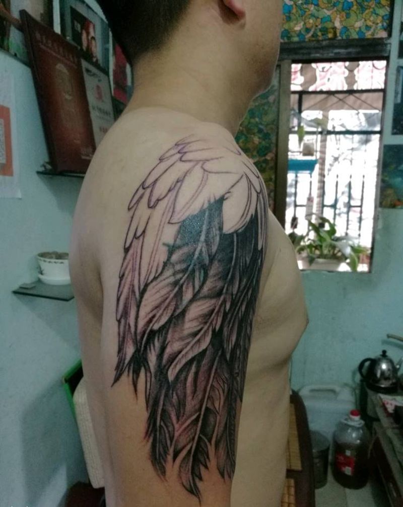 • 纹身吧推荐的披肩图腾半胛纹身图案作品展示