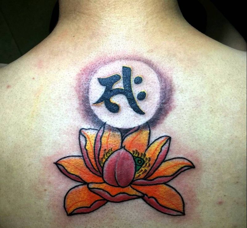 当前位置: 首页 >广东省汕头市纹身店-赤龙纹身工作室纹身图案>梵语莲花纹身图片