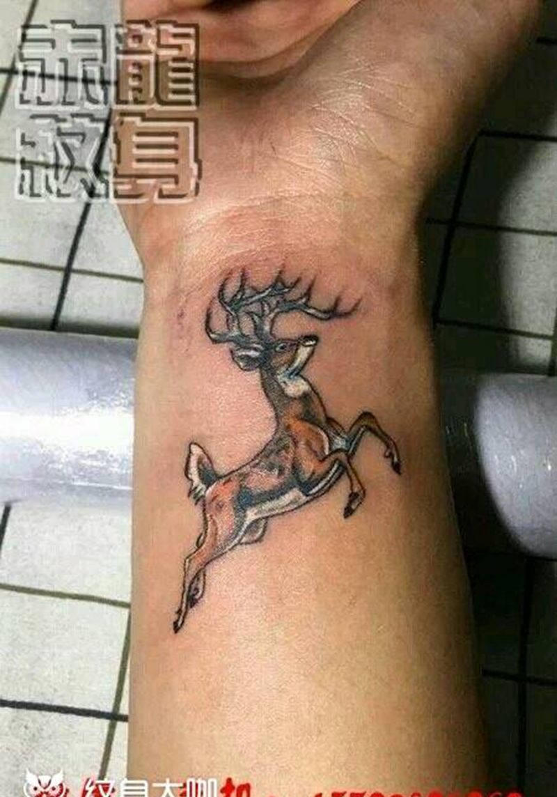 当前位置: 首页 >广东省汕头市纹身店-赤龙纹身工作室纹身图案>彩色小鹿纹身图片