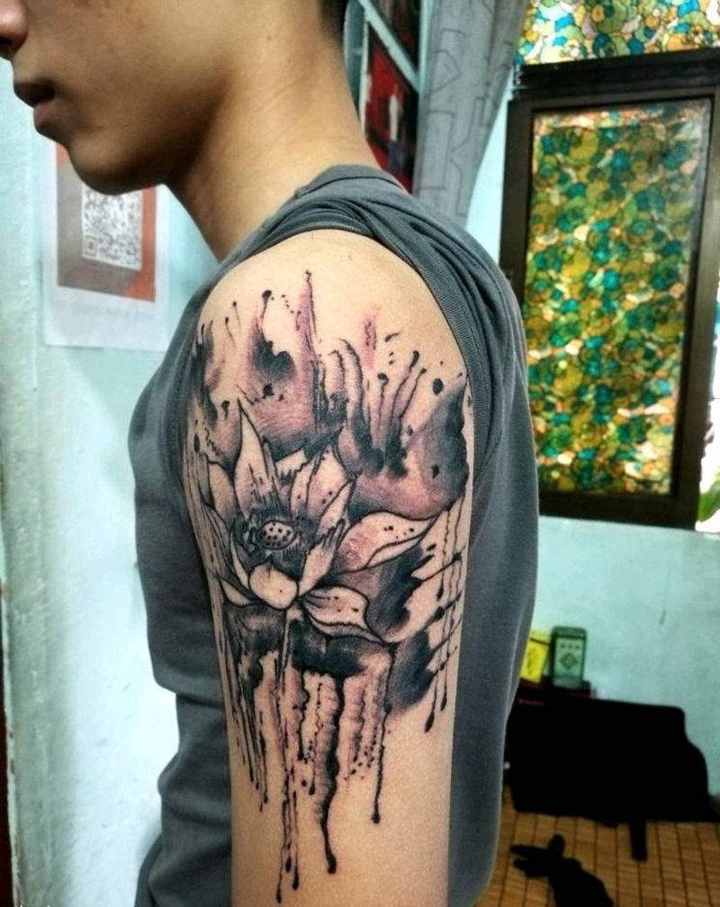 当前位置: 首页 >广东省汕头市纹身店-赤龙纹身工作室纹身图案>泼墨莲花纹身图片