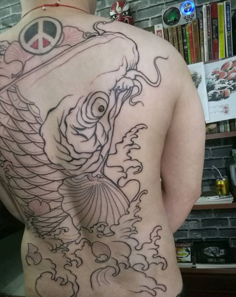 • 黑灰满背纹身图案