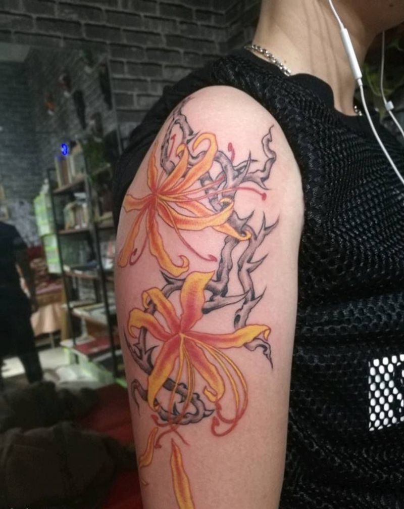 当前位置: 首页 >广东省汕头市纹身店-赤龙纹身工作室纹身图案>彼岸花纹身图片