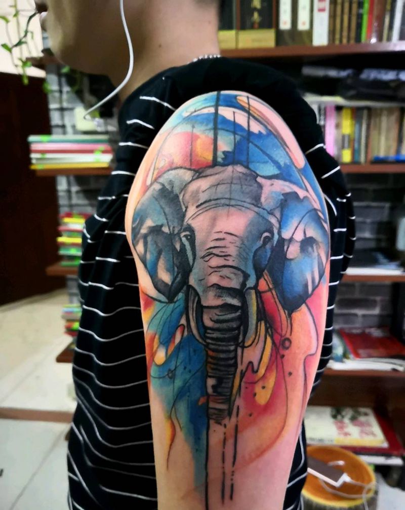 当前位置: 首页 >广东省汕头市纹身店-赤龙纹身工作室纹身图案>泼墨象纹身图片_手臂动物泼墨成品纹身图案