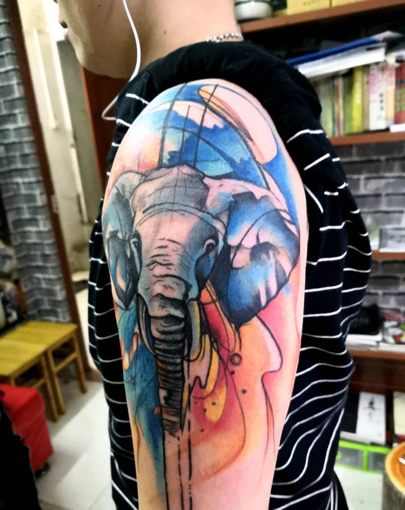 当前位置: 首页 >广东省汕头市纹身店-赤龙纹身工作室纹身图案>泼墨象纹身图片_手臂动物泼墨成品纹身图案