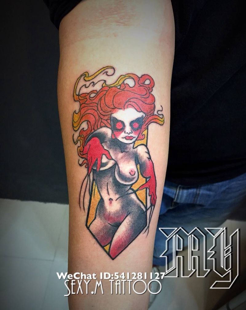 性感卡通女鬼纹身图片_成品手臂欧美纹身图案