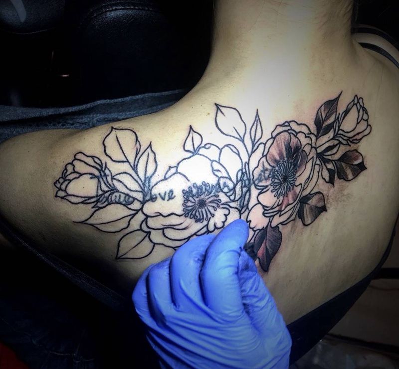 当前位置: 首页 >广东省珠海市纹身店-MY.sexy.m Tattoo纹身图案>拉絲黑灰素花纹身图片_成品背部欧美清新纹身图案