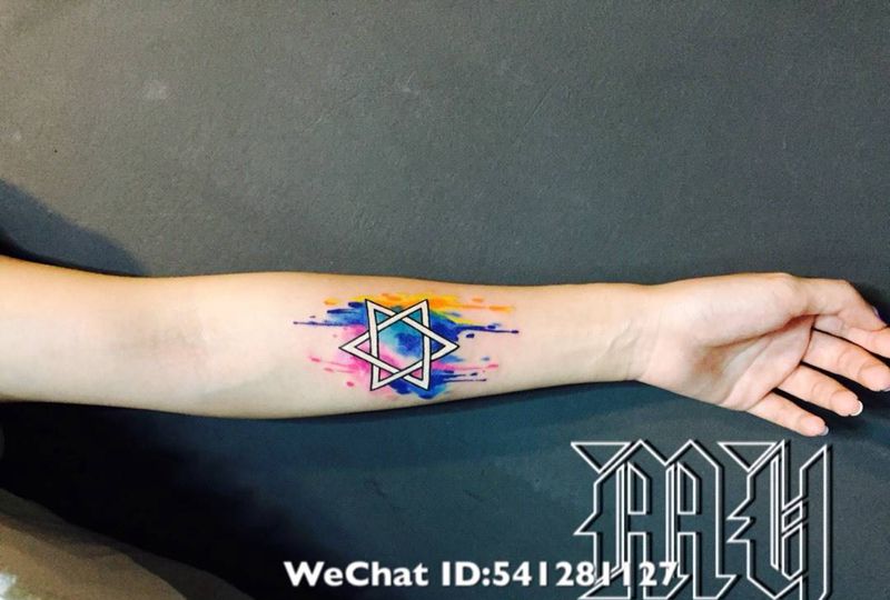 水彩纹身图片_成品手部欧美清新原创纹身图案