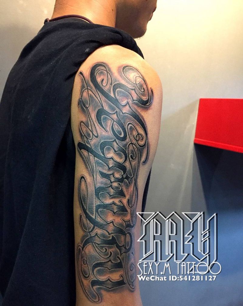 当前位置: 首页 >广东省珠海市纹身店-MY.sexy.m Tattoo纹身图案>黑灰花體字纹身图片_成品手部欧美原创纹身图案