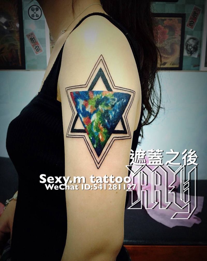 (遮蓋)六芒星空纹身图片_成品手部清新欧美原创纹身图案