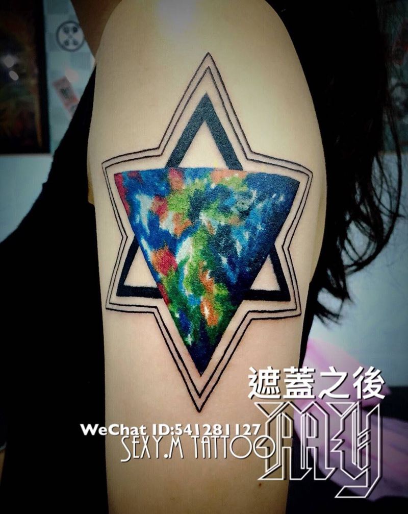 (遮蓋)六芒星空纹身图片_成品手部清新欧美原创纹身图案