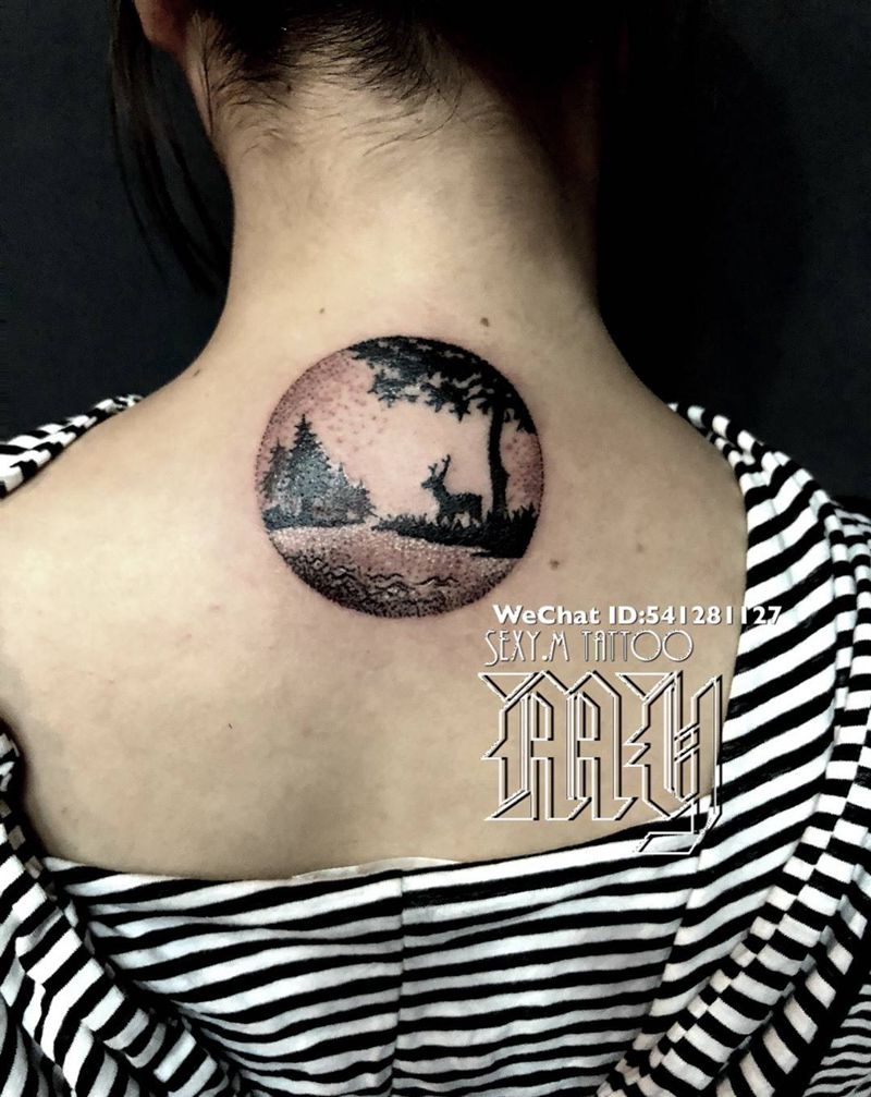 当前位置: 首页 >广东省珠海市纹身店-MY.sexy.m Tattoo纹身图案>黑灰点刺风景图纹身图片_成品背部清新纹身图案