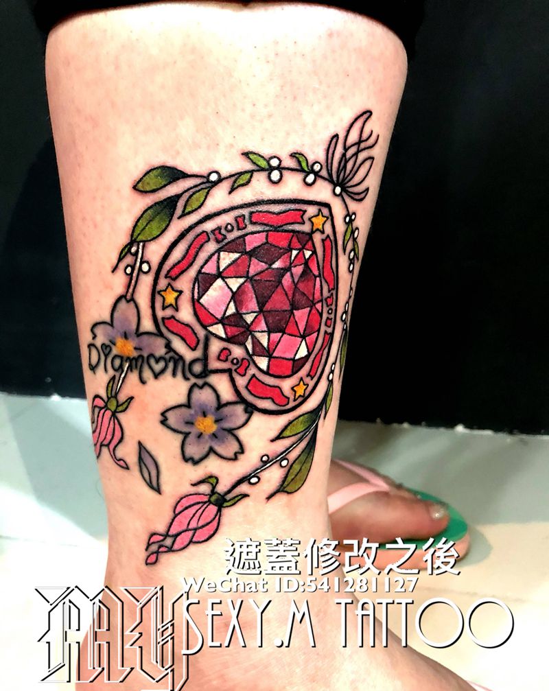 重彩清新纹身图片_成品腿部欧美清新原创纹身图案