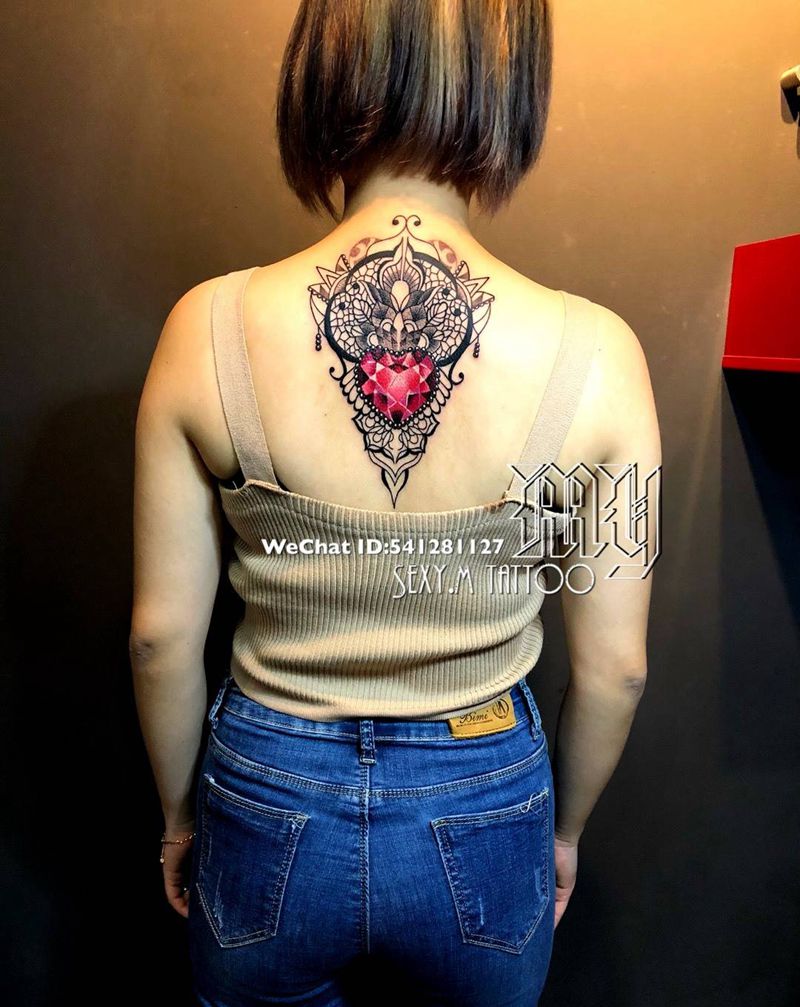 当前位置: 首页 >广东省珠海市纹身店-MY.sexy.m Tattoo纹身图案>红宝石线条风格纹身图片_背部几何原创纹身图案