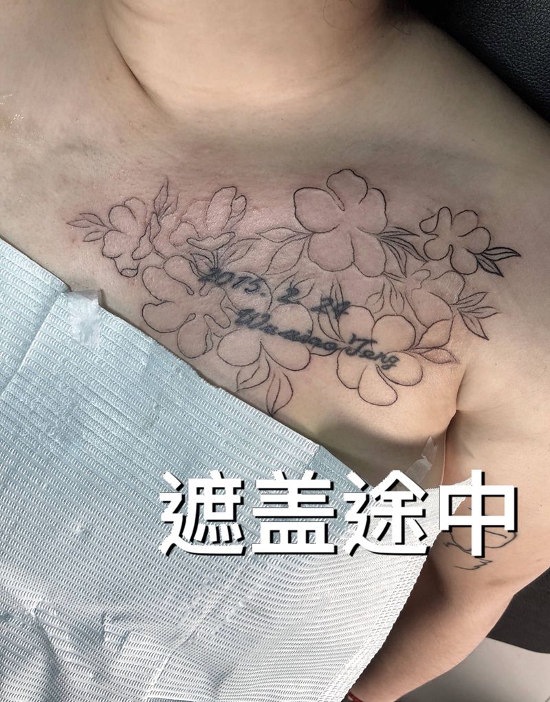 清新风格纹身图片_成品胸部清新纹身图案