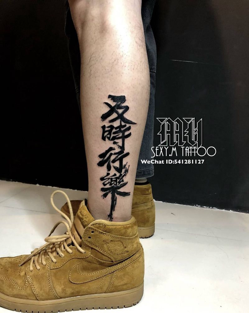水墨毛笔字体纹身图片_脚部水墨纹身图案