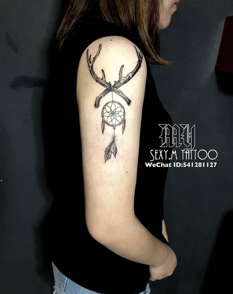 当前位置: 首页 >广东省珠海市纹身店-MY.sexy.m Tattoo纹身图案>黑灰鹿角捕梦网纹身图片_手臂纹身图案