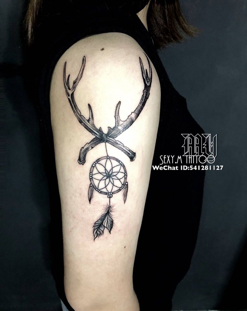 当前位置: 首页 >广东省珠海市纹身店-MY.sexy.m Tattoo纹身图案>黑灰鹿角捕梦网纹身图片_手臂纹身图案
