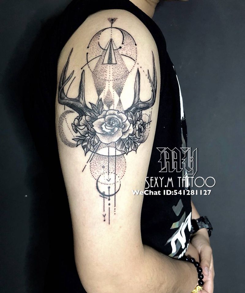 当前位置: 首页 >广东省珠海市纹身店-MY.sexy.m Tattoo纹身图案>几何点刺鹿角花纹身图片_手部几何点刺纹身图案