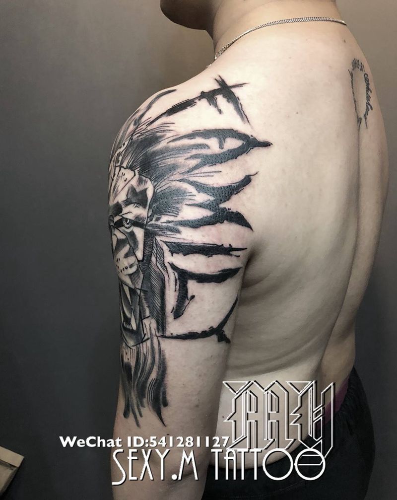 • 纹身吧推荐的披肩图腾半胛纹身图案作品展示