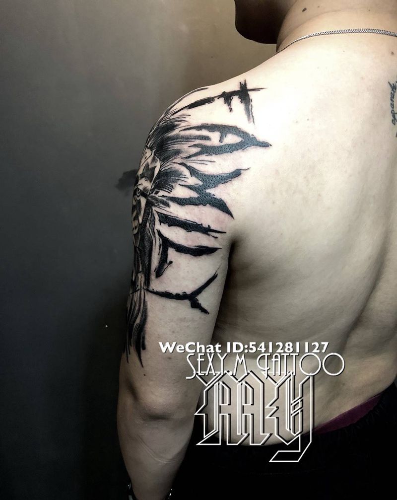 • 纹身吧推荐的披肩图腾半胛纹身图案作品展示