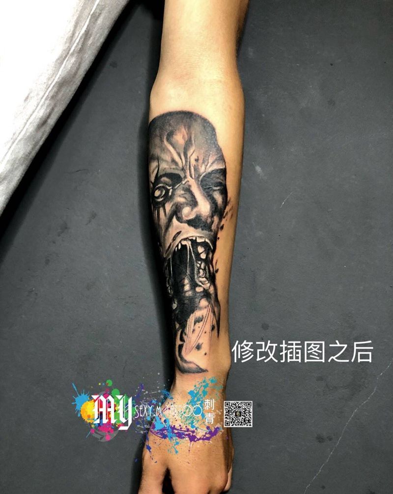 当前位置: 首页 >广东省珠海市纹身店-MY.sexy.m Tattoo纹身图案>黑灰恶心鬼纹身图片_手部欧美写实纹身图案