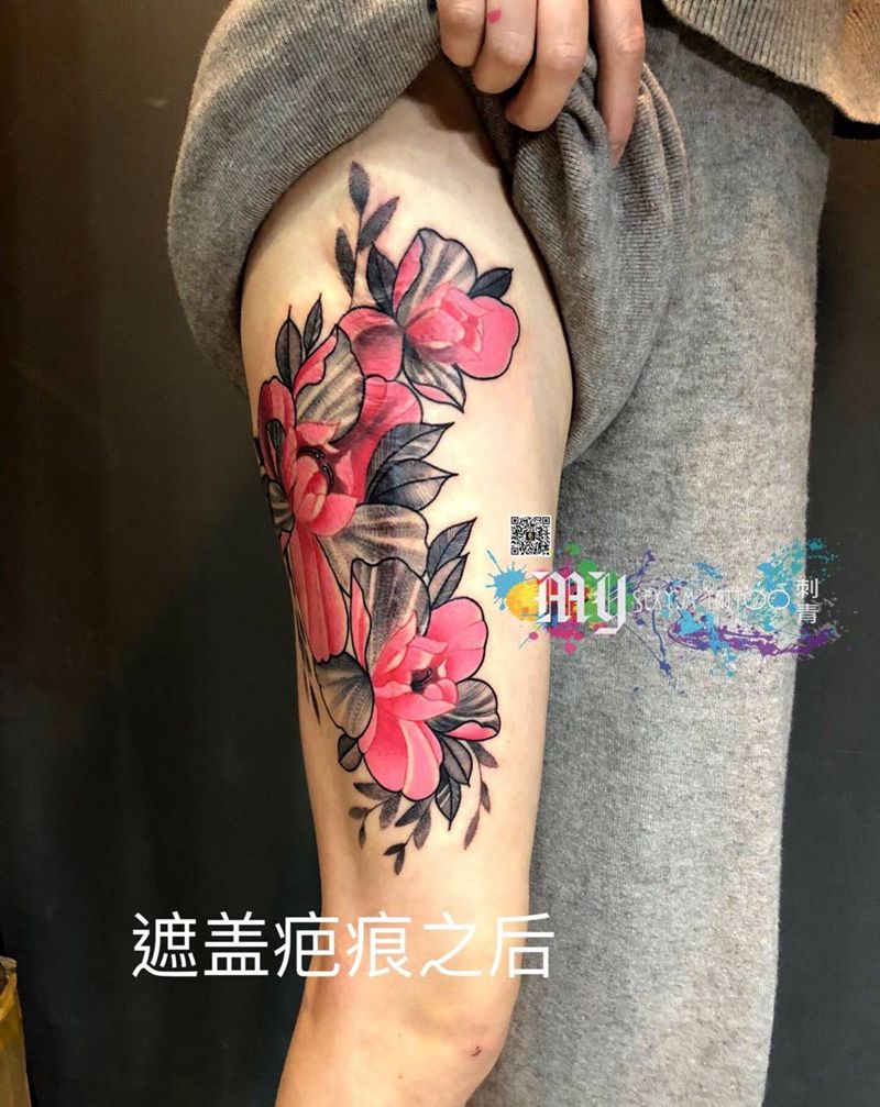 • 女性大花胸纹身_43张霸气漂亮的女性大花胸纹身图案作品