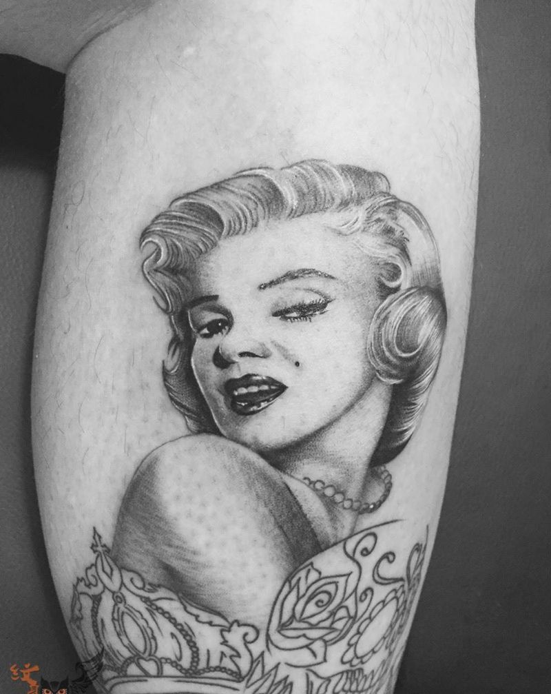 梦露纹身图片_欧美肖像人物腿部纹身图案