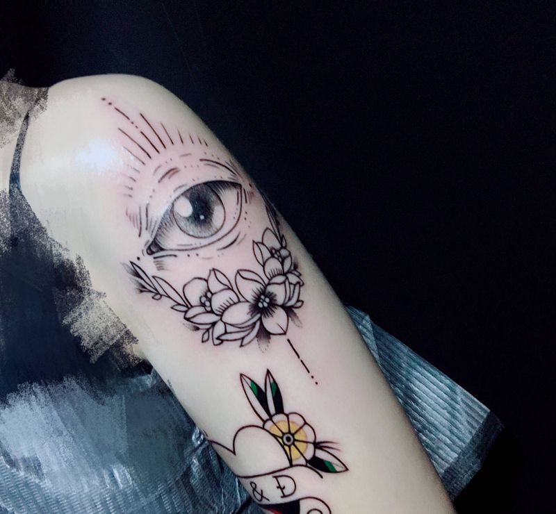 • 手背潮流时尚的玫瑰花眼睛纹身图案
