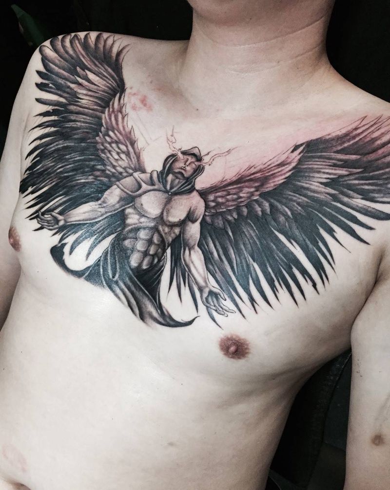 天使遮盖疤痕未完纹身图片_成品胸部欧美鬼神纹身图案