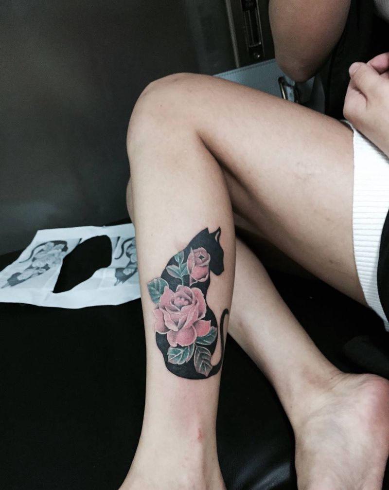 花猫纹身图片_成品脚部动物植物图腾欧美纹身图案