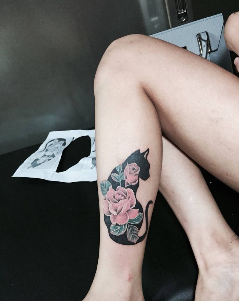 花猫纹身图片_成品脚部动物植物图腾欧美纹身图案