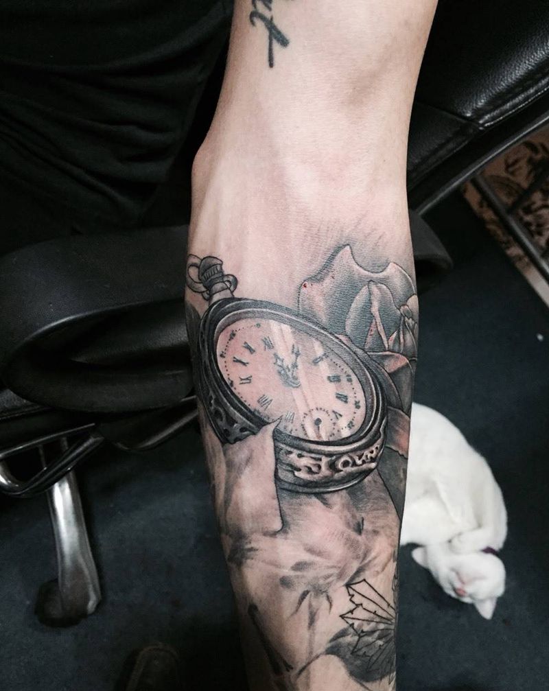 当前位置: 首页 >广东省珠海市纹身店-九纹龙纹身图案>怀表纹身图片_成品手臂欧美静物纹身图案