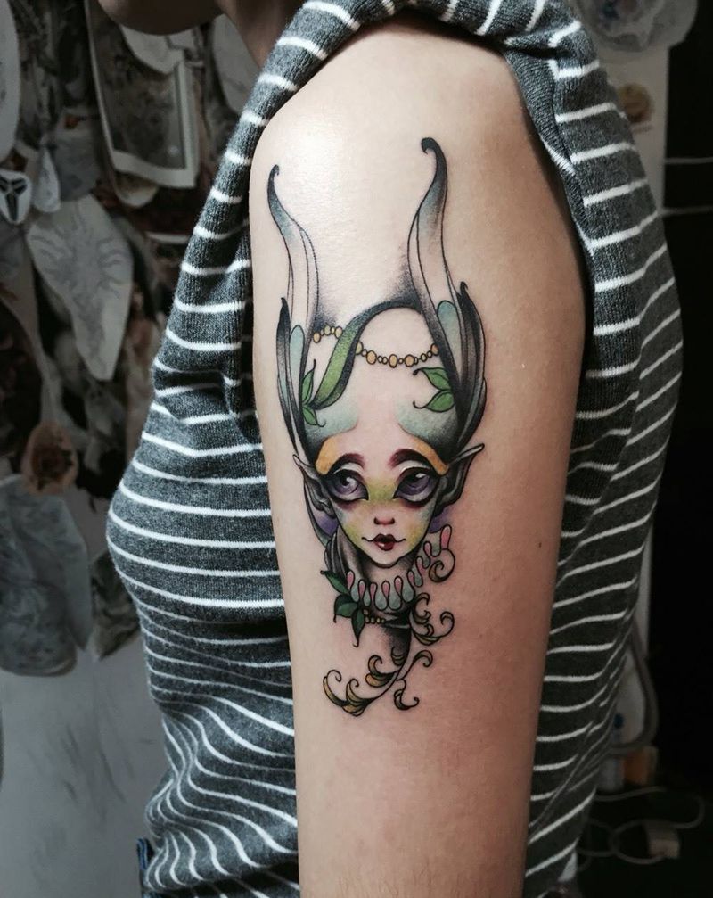当前位置: 首页 >广东省珠海市纹身店-九纹龙纹身图案>精灵纹身图片_成品手臂欧美人物植物纹身图案
