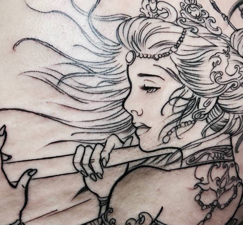 当前位置: 首页 >广东省珠海市纹身店-九纹龙纹身图案>歌姬勾线纹身图片_成品背部传统人物纹身图案