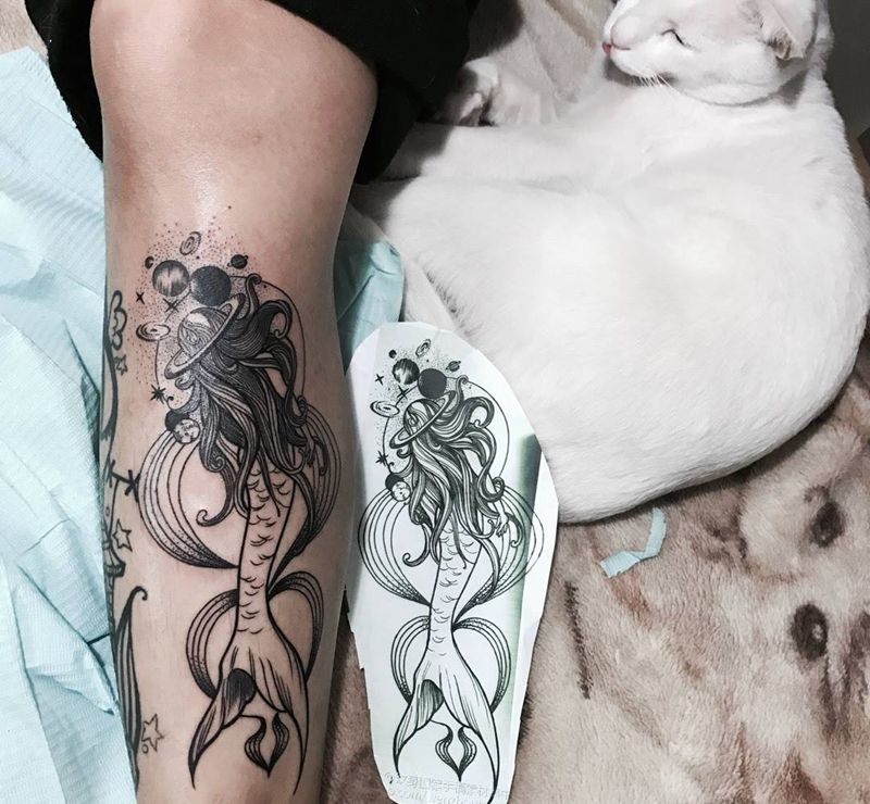 当前位置: 首页 >广东省珠海市纹身店-九纹龙纹身图案>点与线美人鱼纹身图片_成品脚部欧美清新鬼神动物人物纹身图案