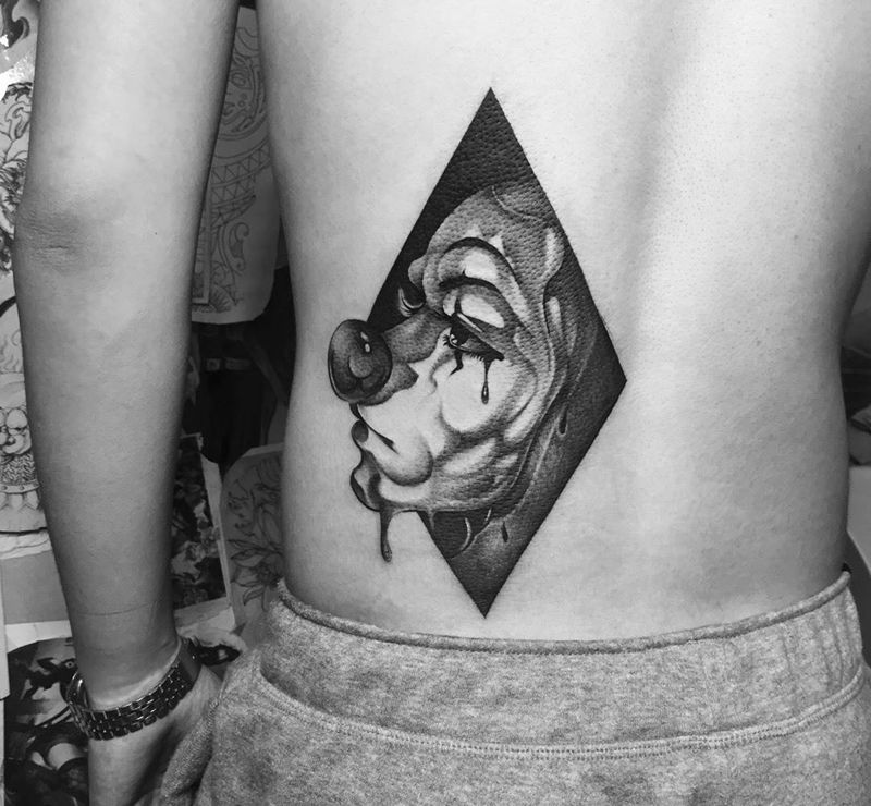 当前位置: 首页 >广东省珠海市纹身店-九纹龙纹身图案>小丑泪纹身图片_成品腰部欧美人物写实纹身图案
