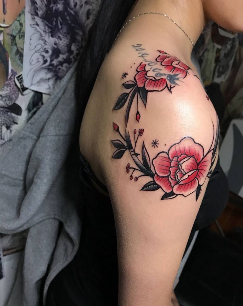当前位置: 首页 >广东省珠海市纹身店-九纹龙纹身图案>肩花环纹身图片_成品肩部欧美植物清新纹身图案